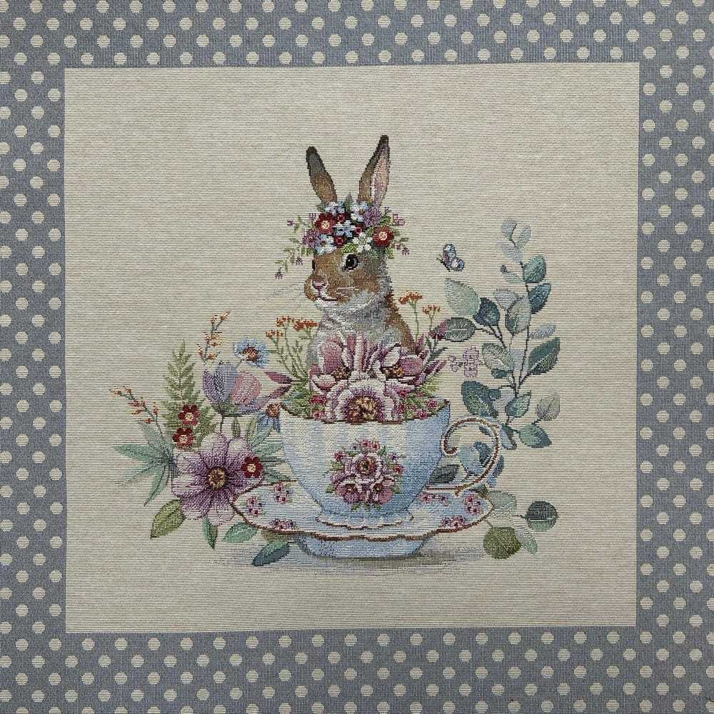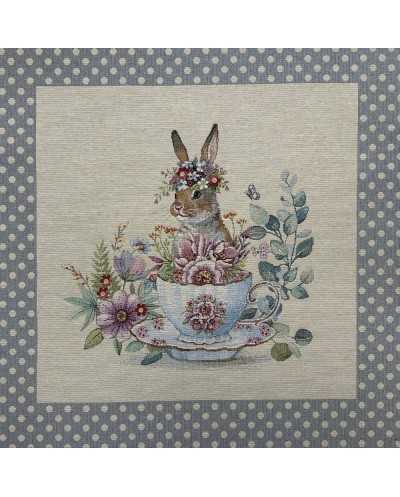 Pannello Gobelin Coniglio Tazza Floreale 45x45 Cm
