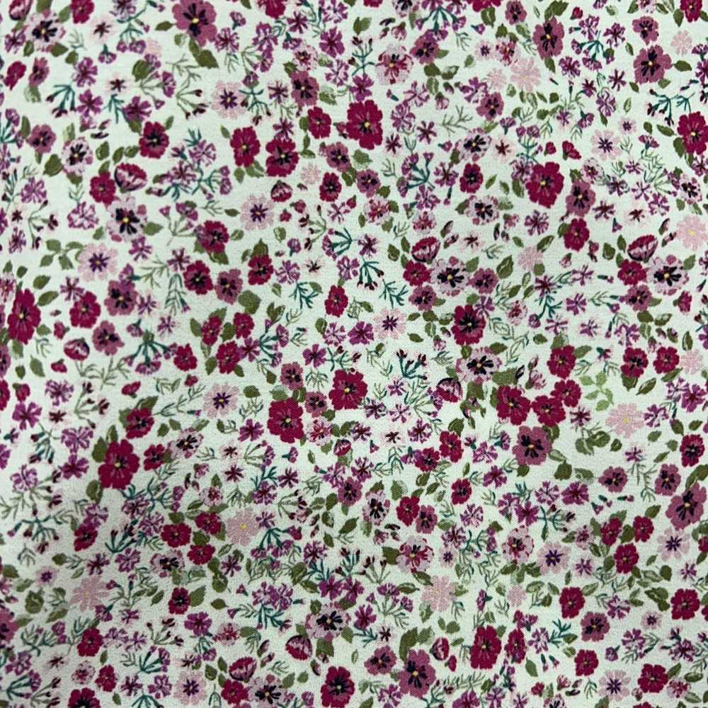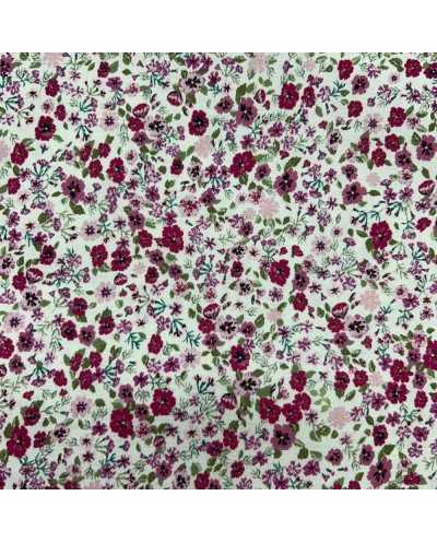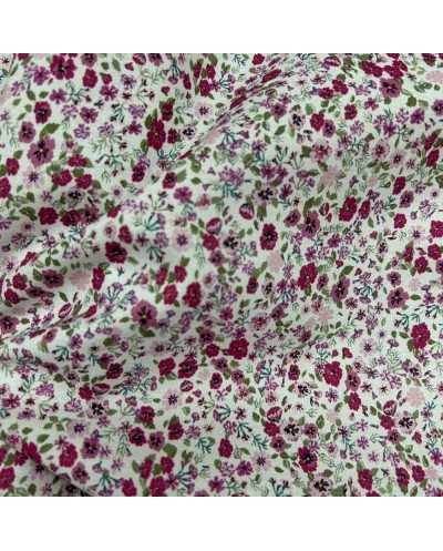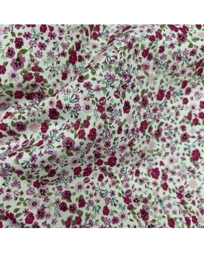 Tessuto cotone stampato disegno fiorellini fucsia fondo bianco