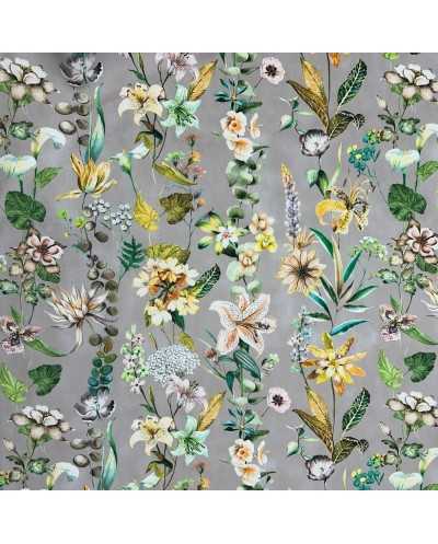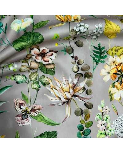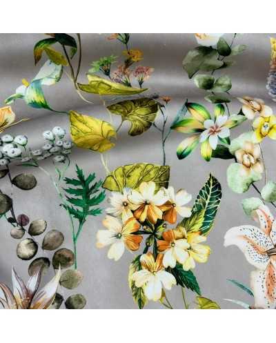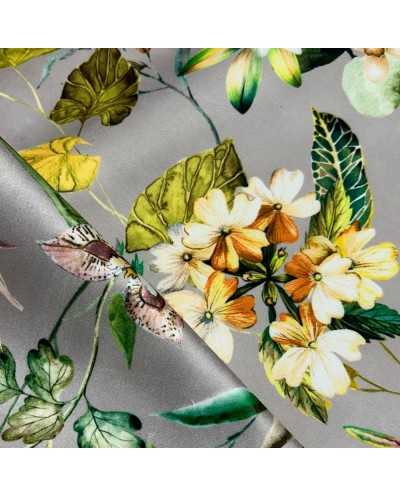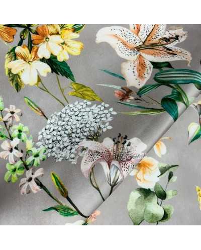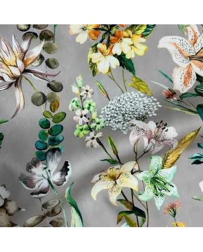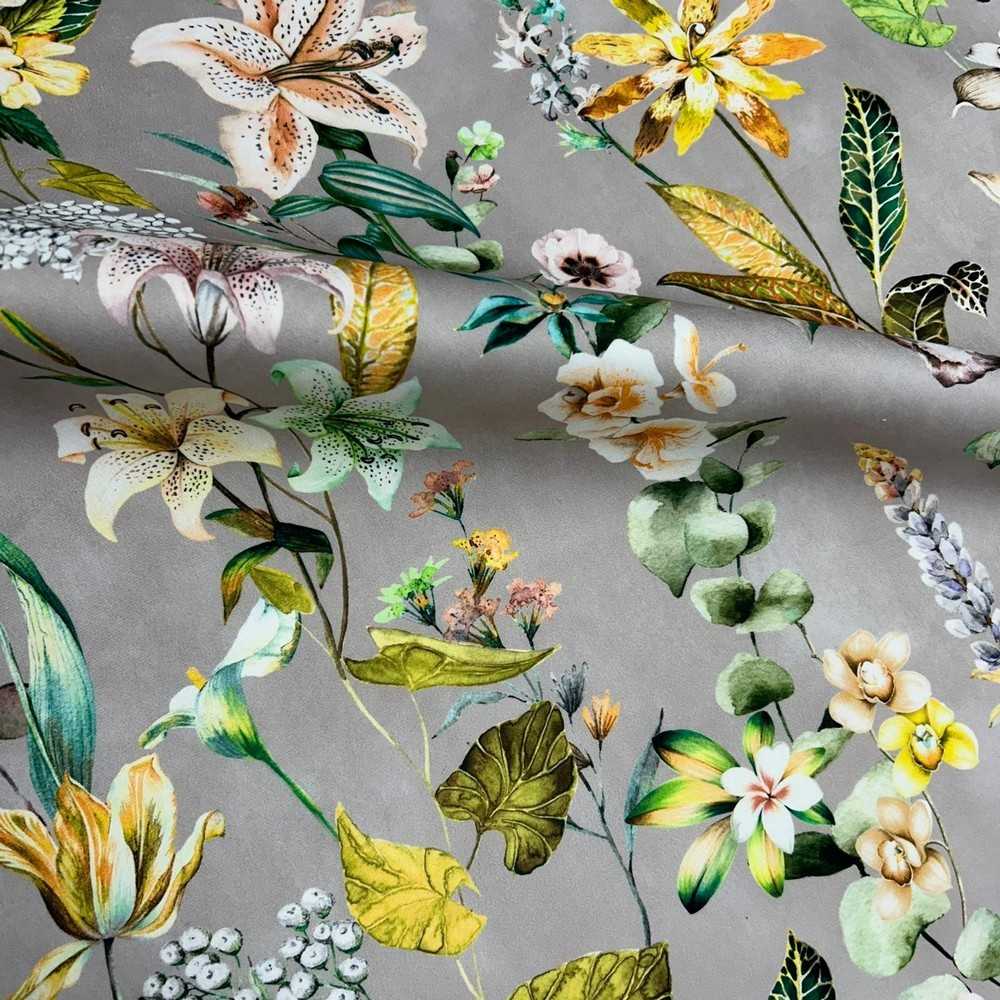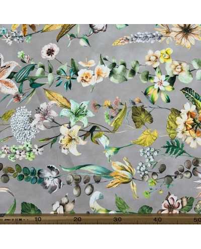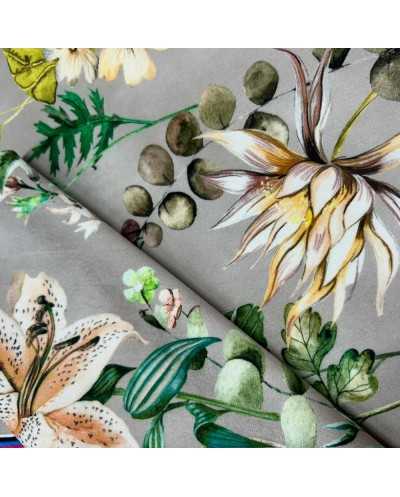 Tessuto Velluto Panno Fiori Grigio 50 Cm