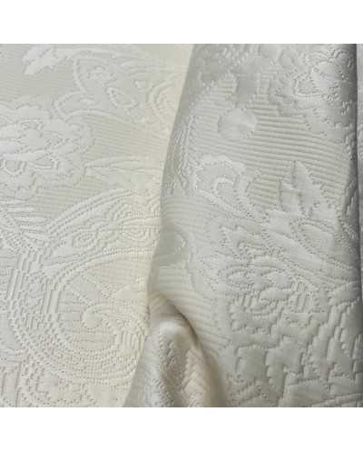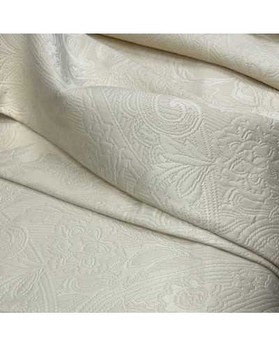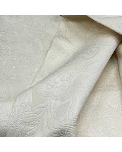Tessuto matelassè cotone disegno fiori colore panna
