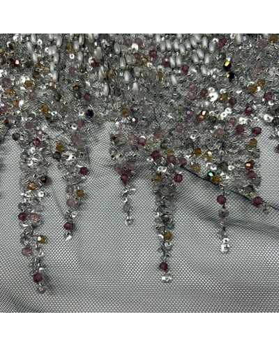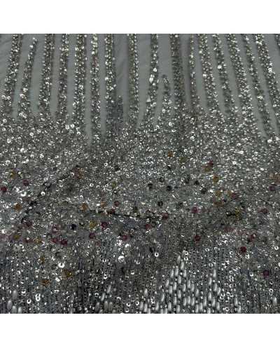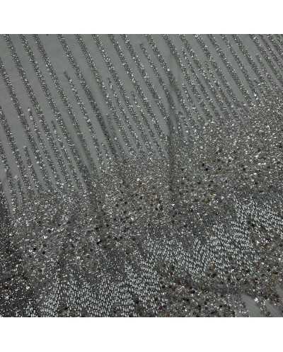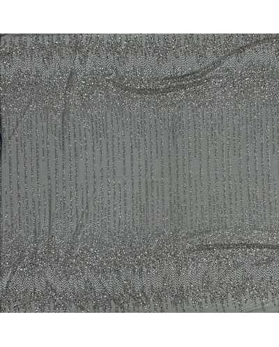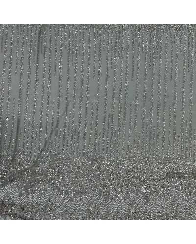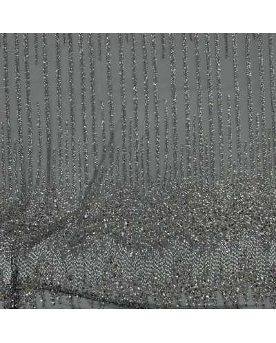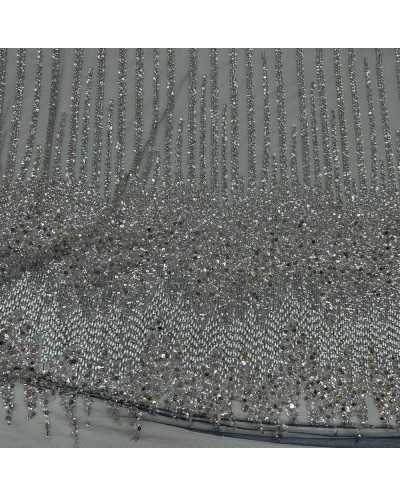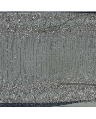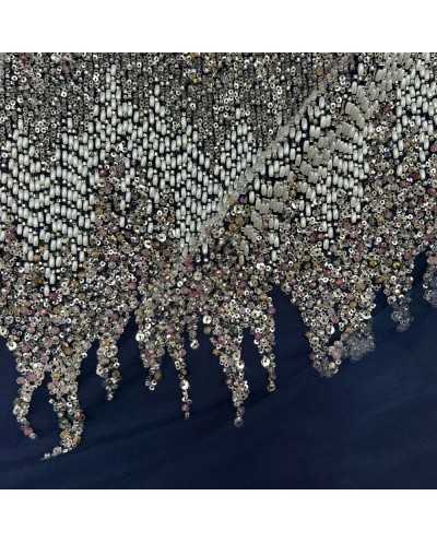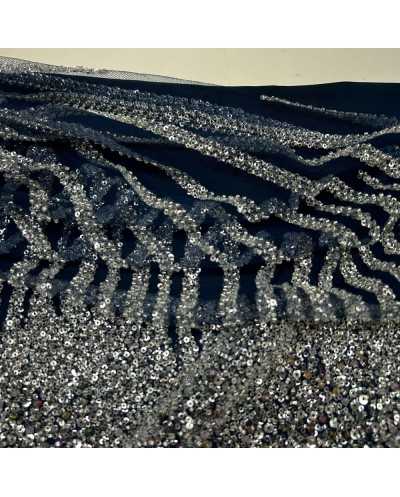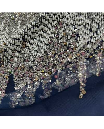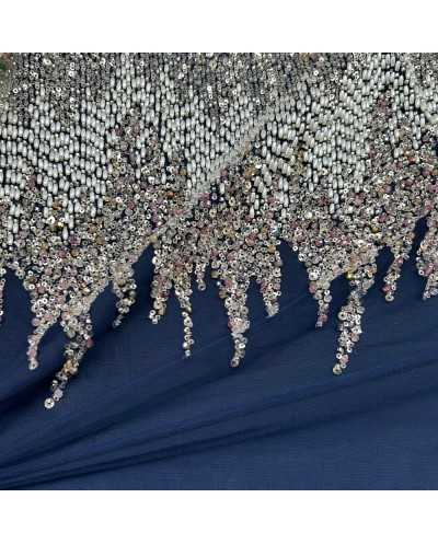 Tessuto Tulle Ricamato Blu Cascata Argento 50 Cm
