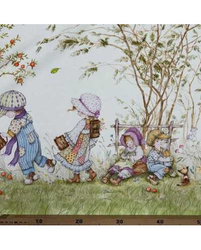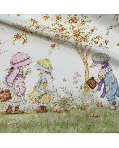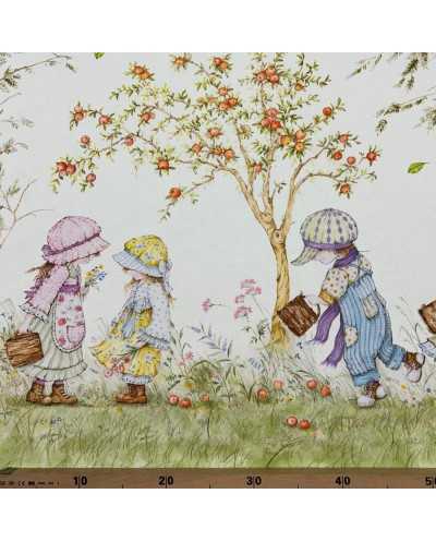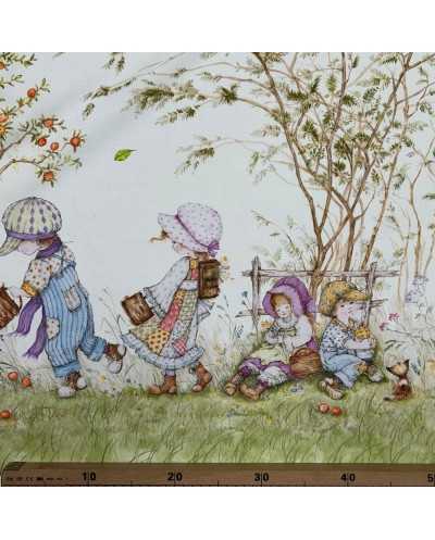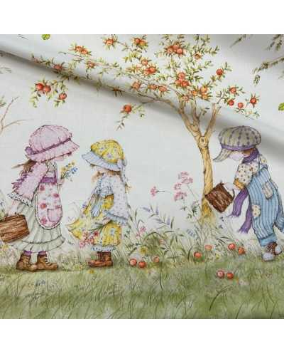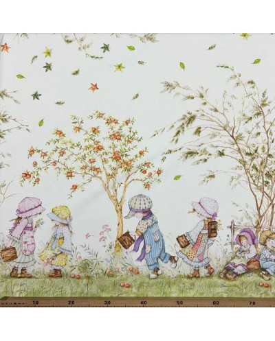 Tessuto tela di cotone stampa digitale doppia balza disegno bambini