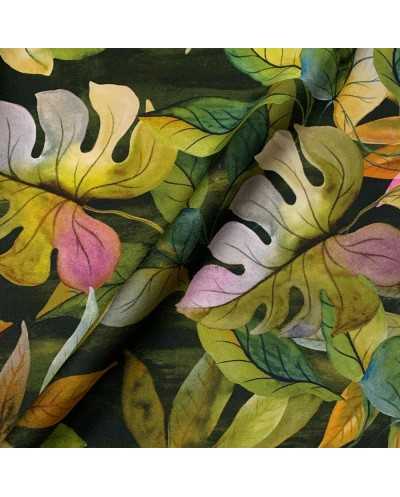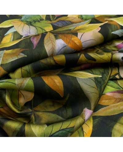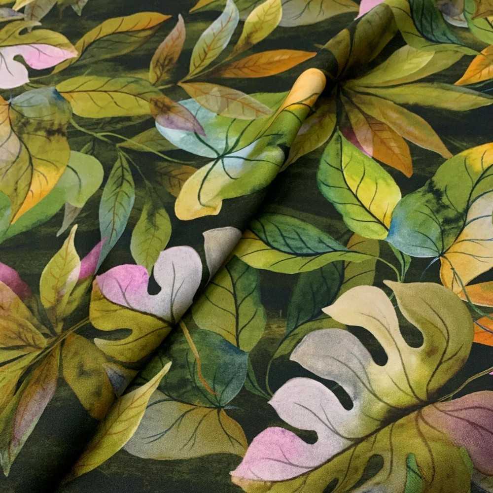 Tessuto raso stampato disegno foglie