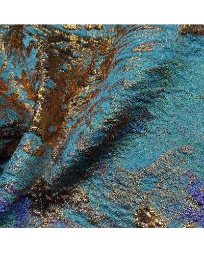 Tessuto Broccato Fireworks Pavone 50 Cm