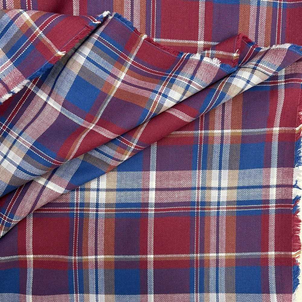 Tessuto Cotone Spiga Check Rosso Blu 50 Cm