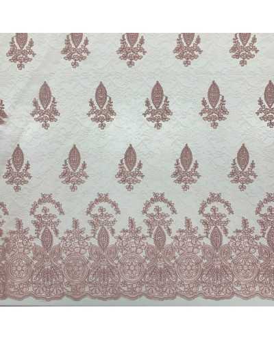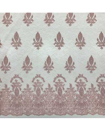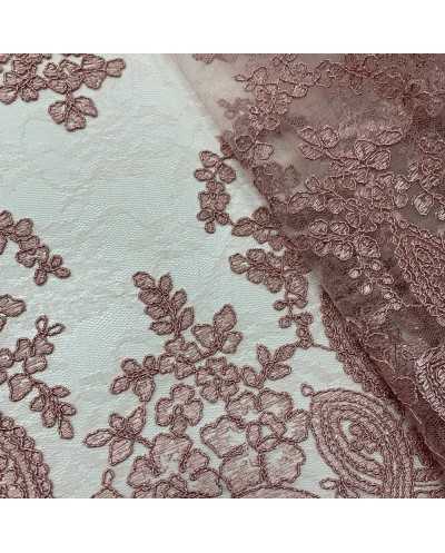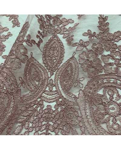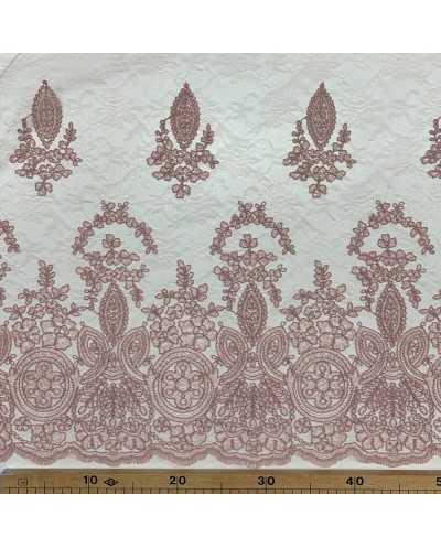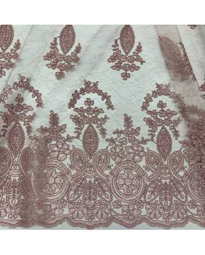 Tessuto Tulle Ricamato Gotico Rosa Antico 50 Cm