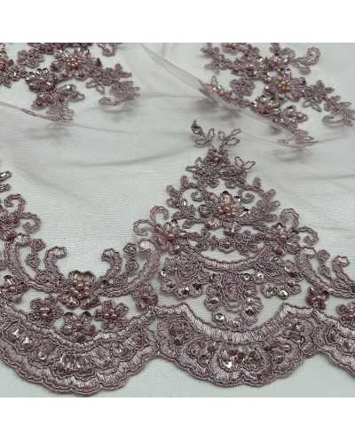 Tessuto Tulle Ricamato Corallini Rosa 80x50 Cm