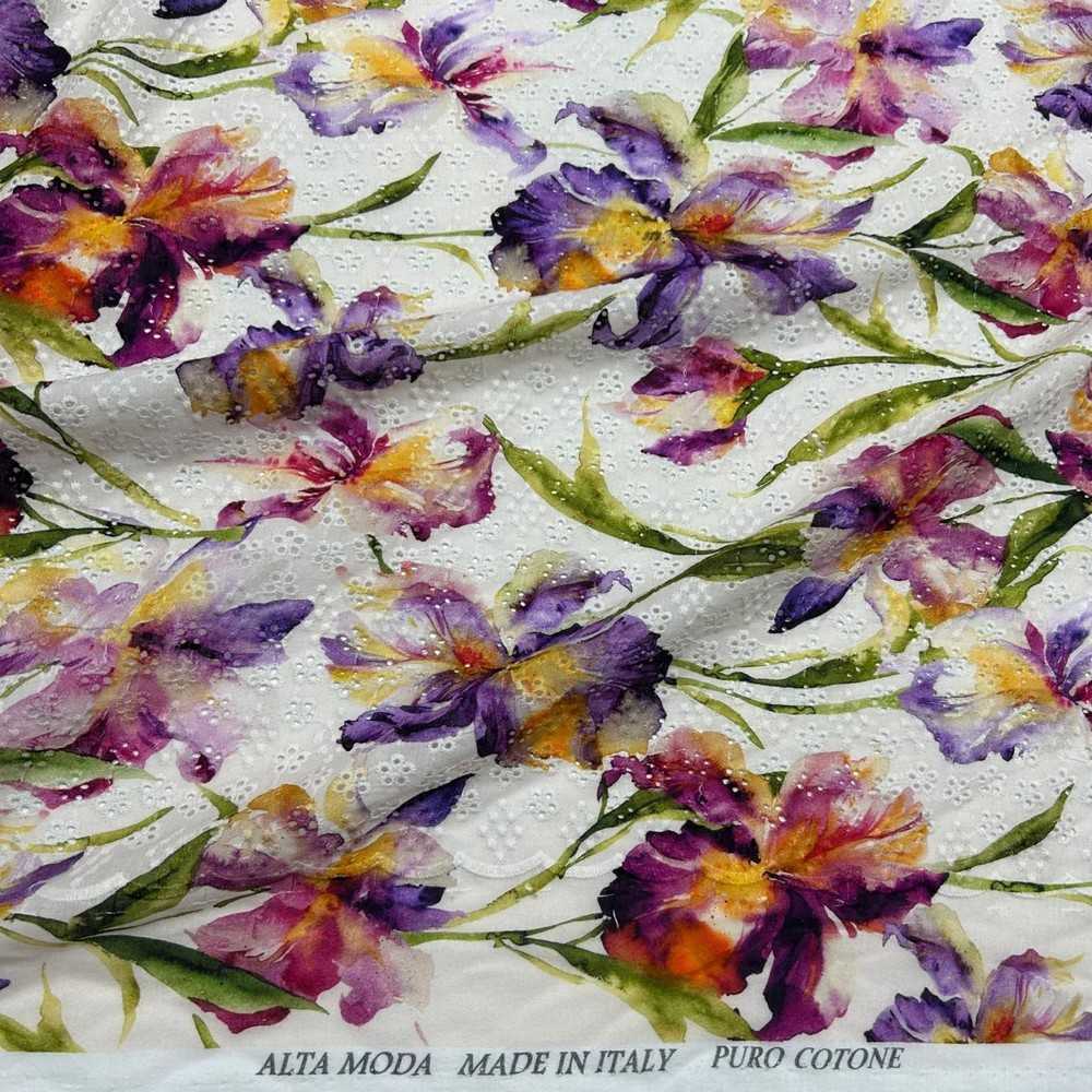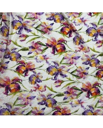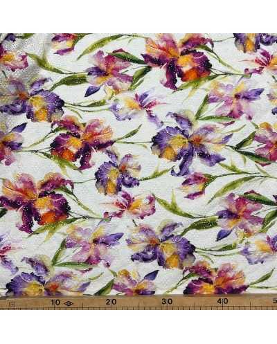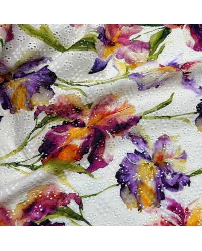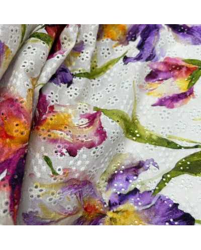 Tessuto Sangallo Stampato Fiori Viola 120x140 Cm