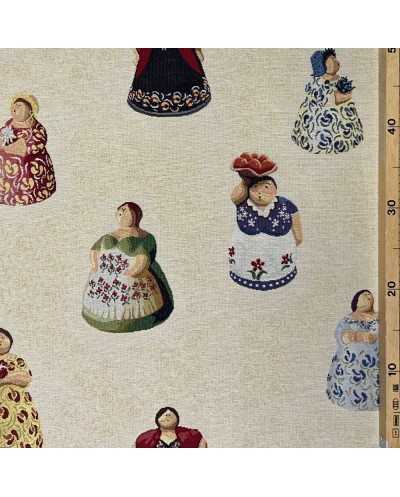 Tessuto gobelin I cotone tappezzeria disegno Li Cummari salentine