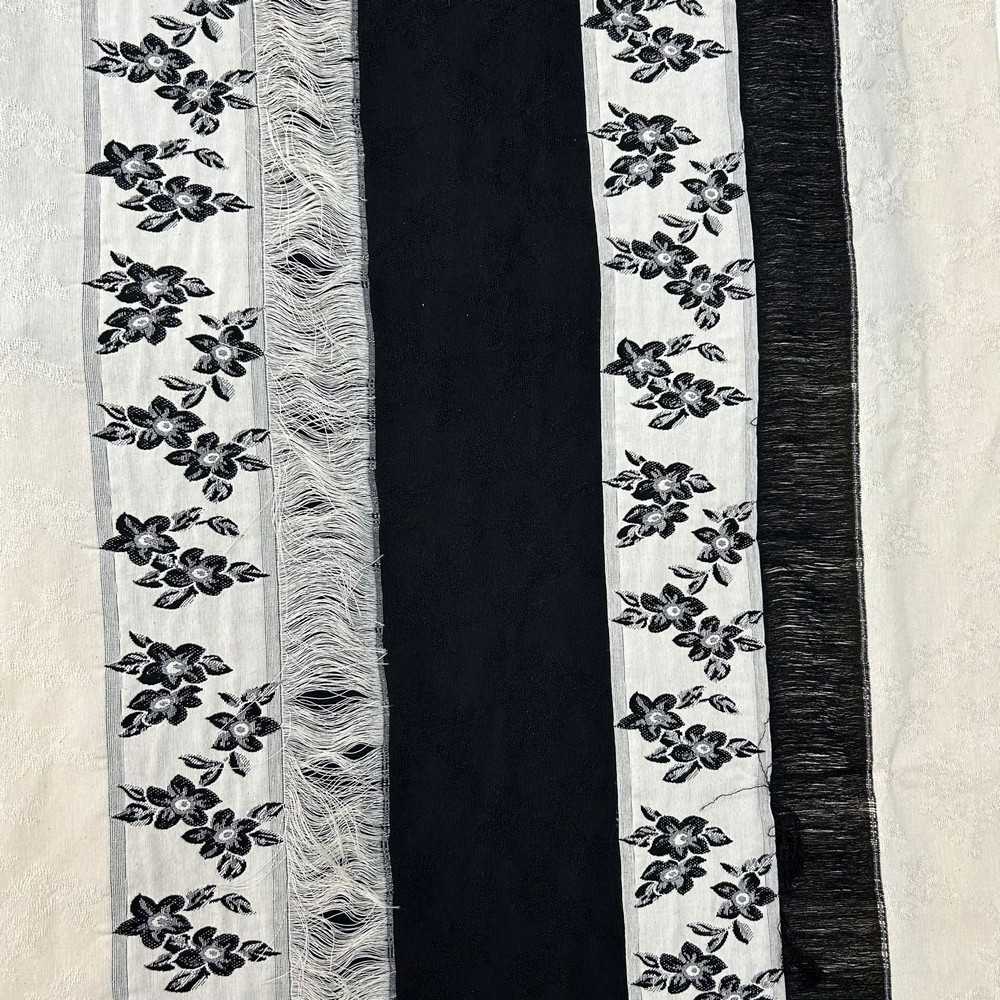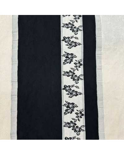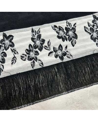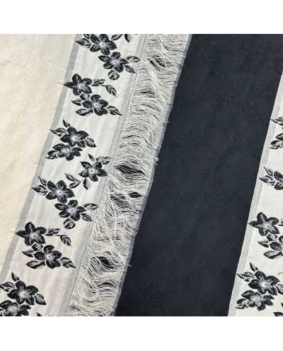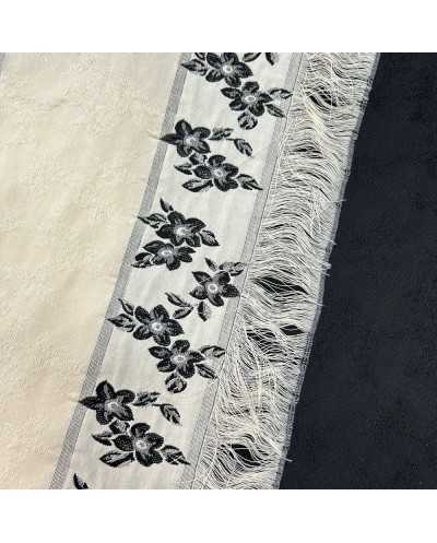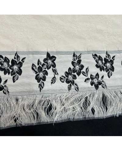 Tessuto Bakhroma cotone frangia disegno fiori bianco nero