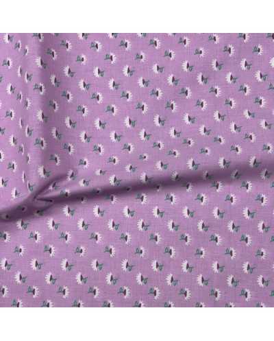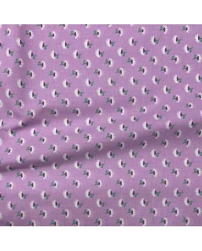 Tessuto tela di cotone stampato disegno fiorellini fondo lilla