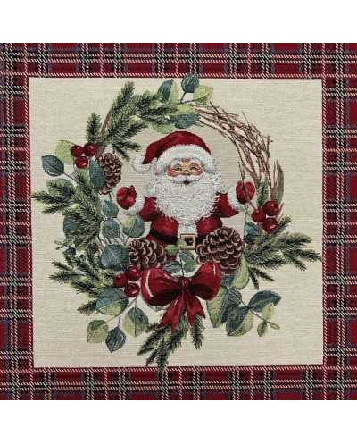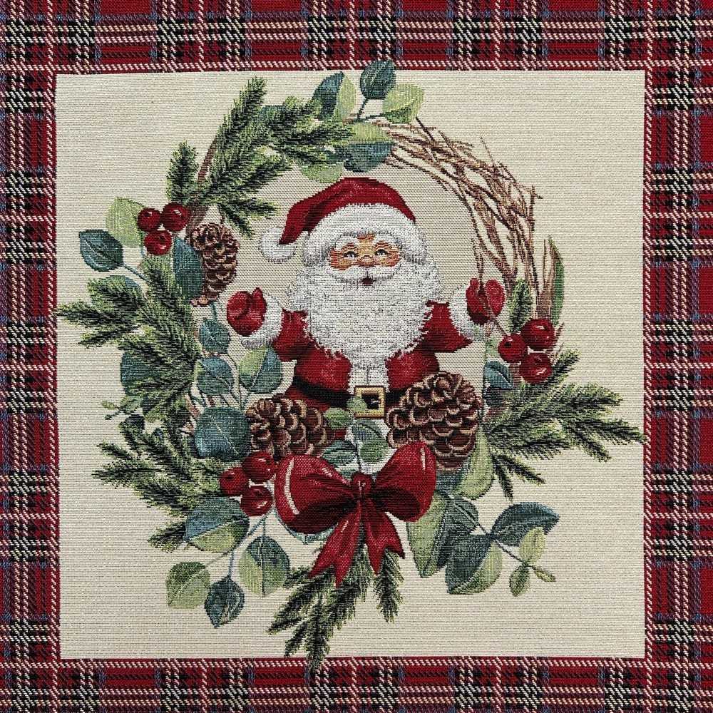 Pannello Gobelin Babbo Natale Ghirlanda Lurex Oro 45x45 Cm