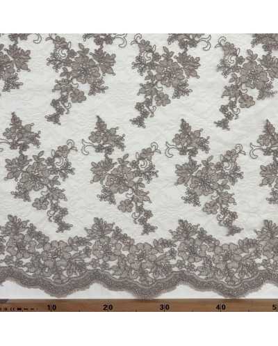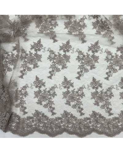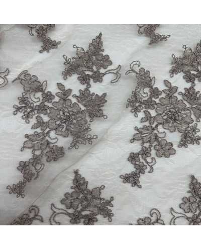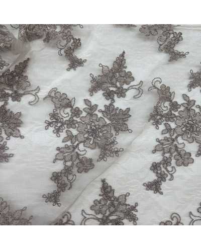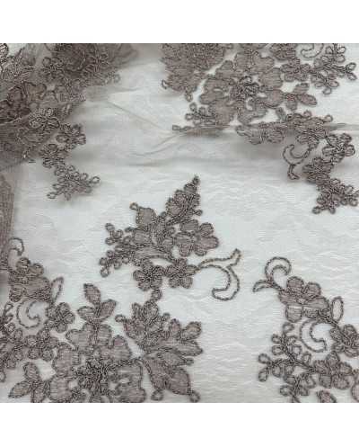 Tessuto Tulle Ricamato Giada Tortora 50 Cm