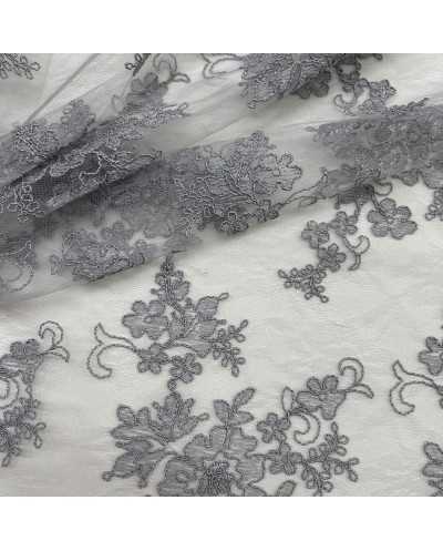 Tessuto Tulle Ricamato Giada Grigio 50 Cm