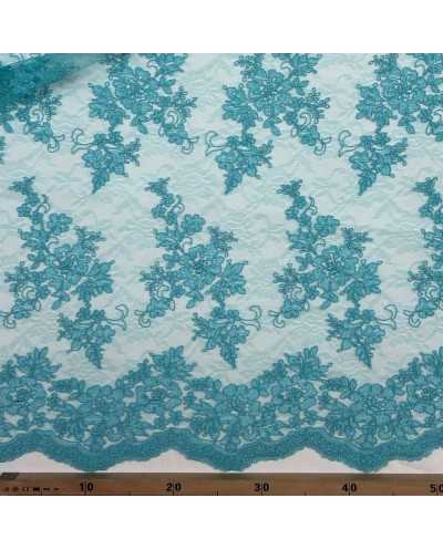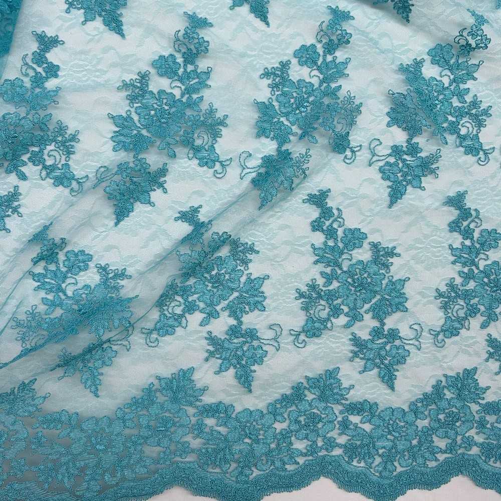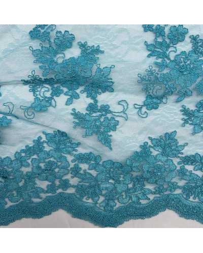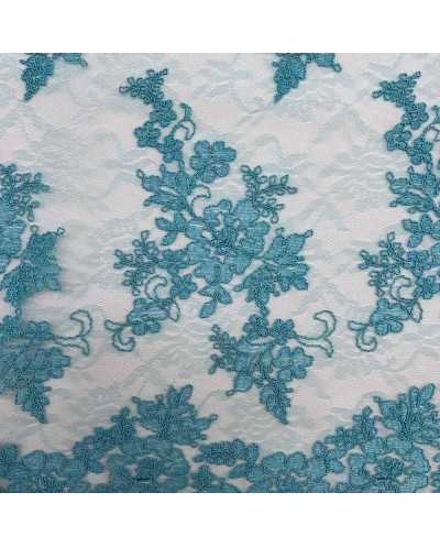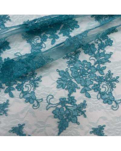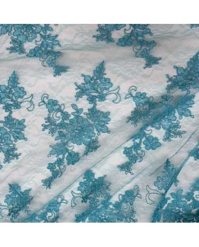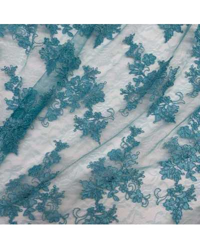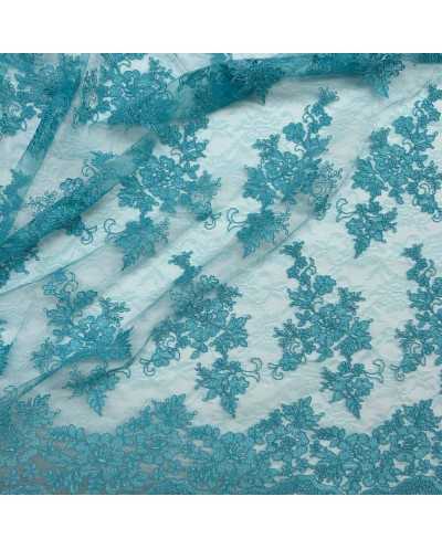 Tessuto Tulle Ricamato Giada Acquamarina 90x130 Cm