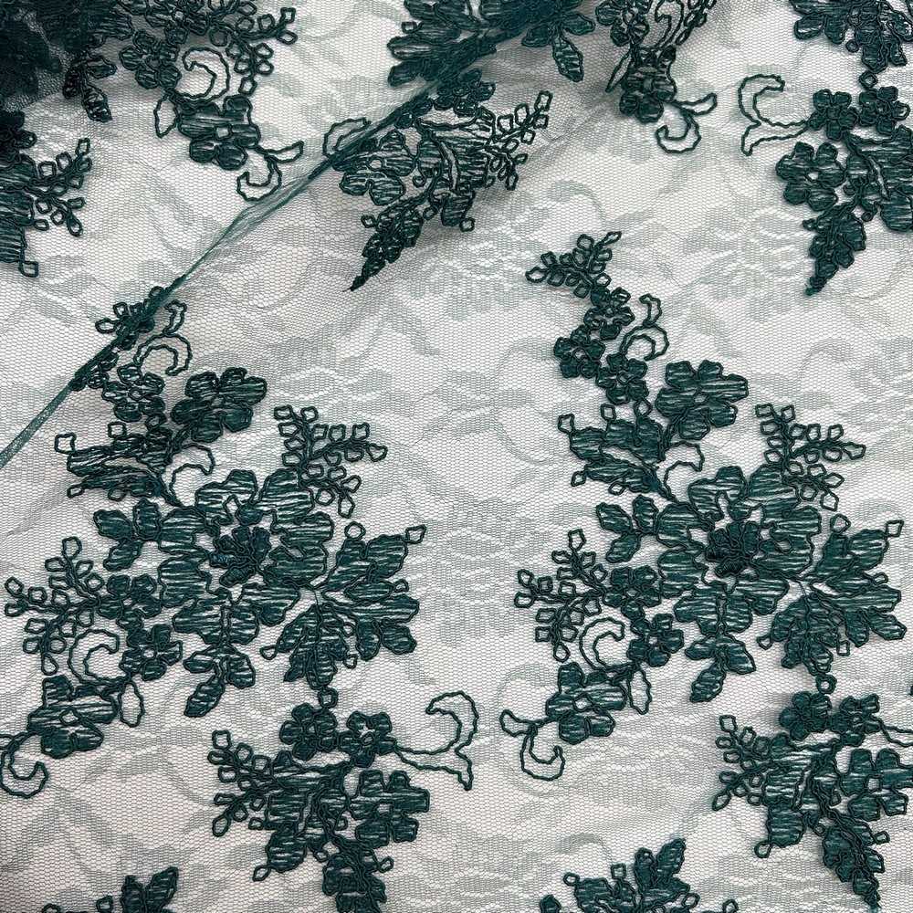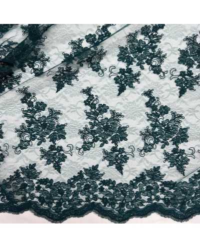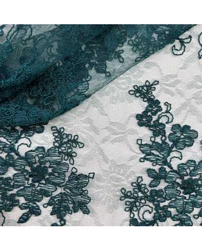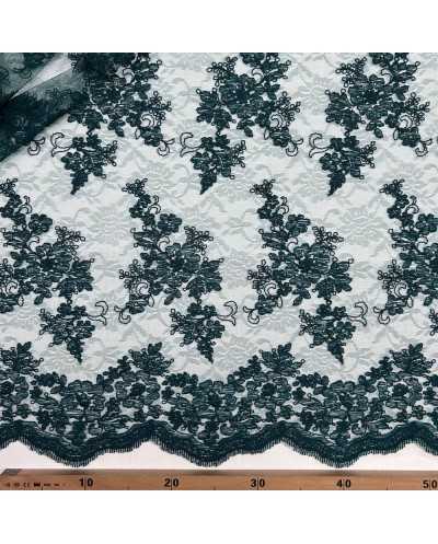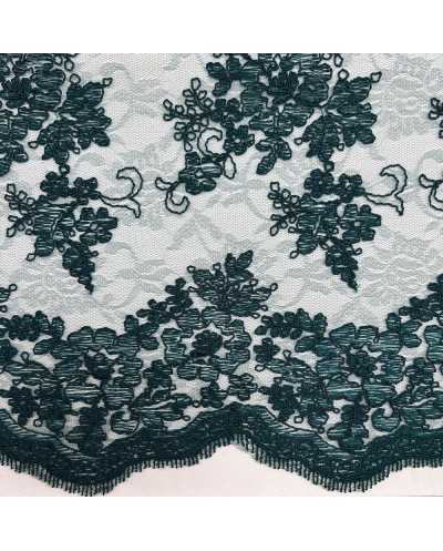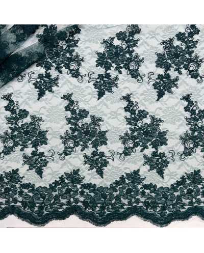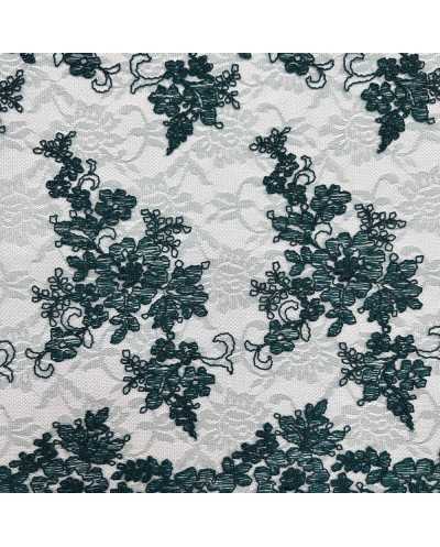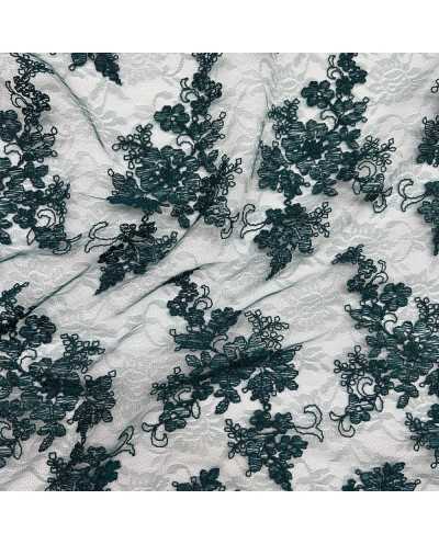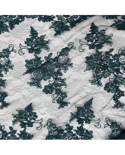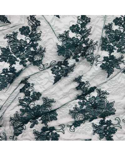 Tessuto Tulle Ricamato Giada Verde Bottiglia 50 Cm