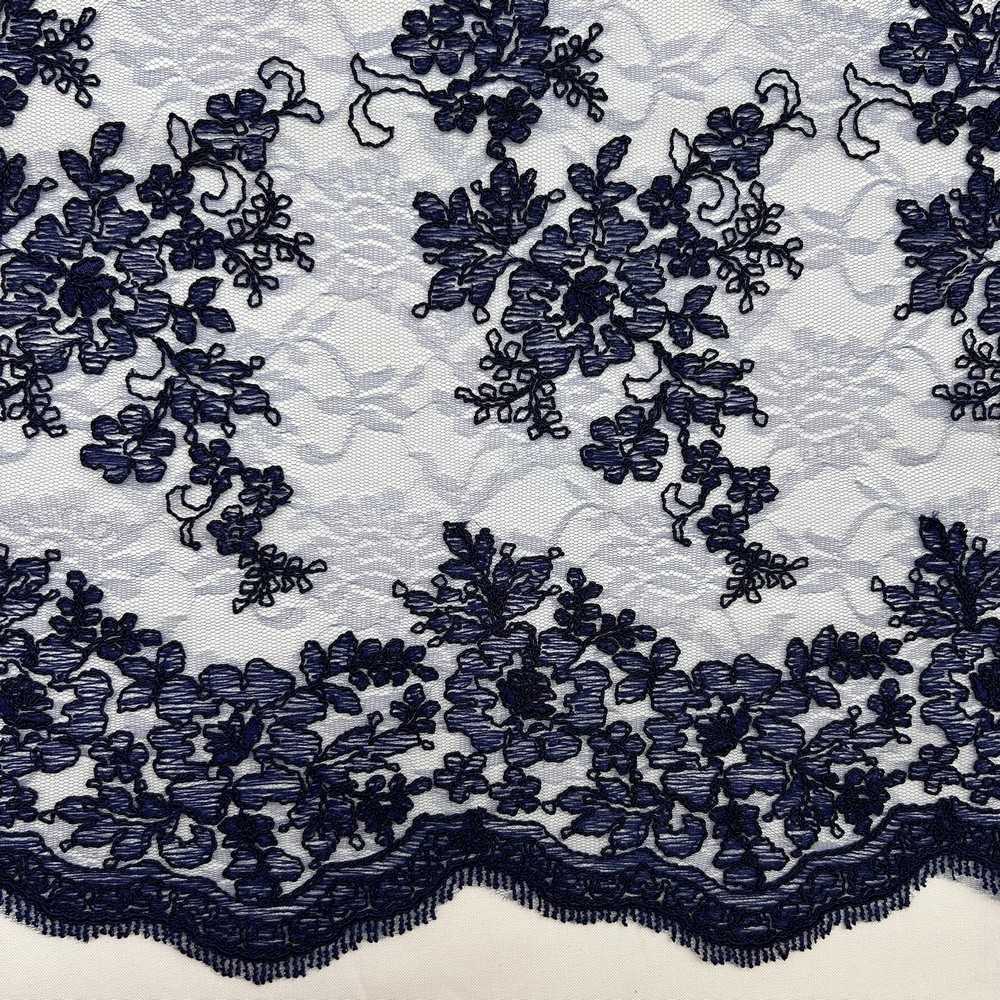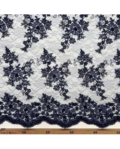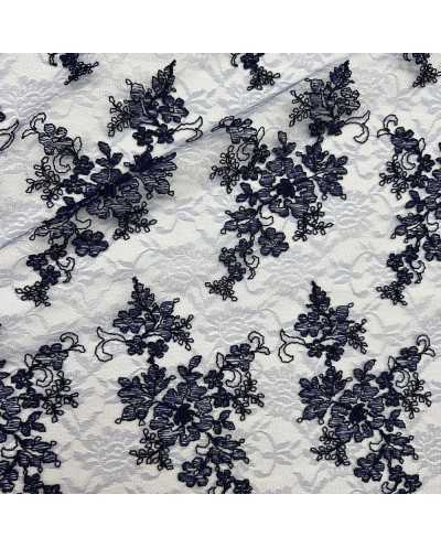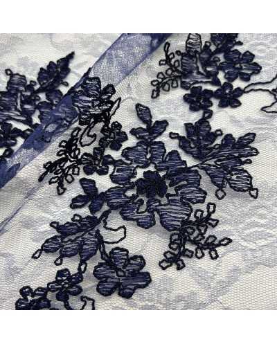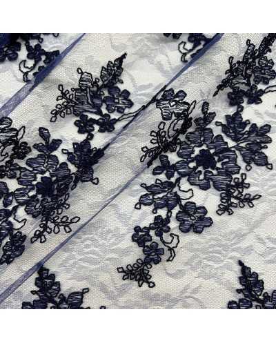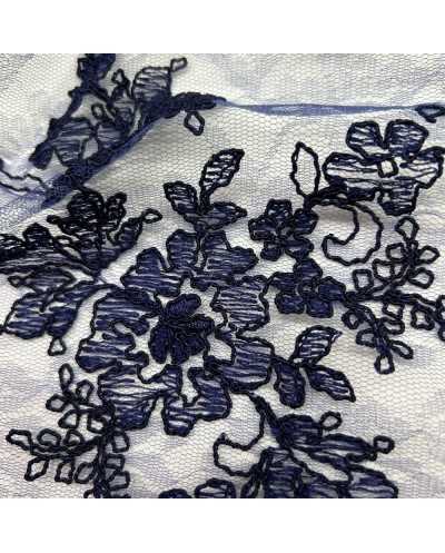 Tessuto Tulle Ricamato Giada Blu 50 Cm