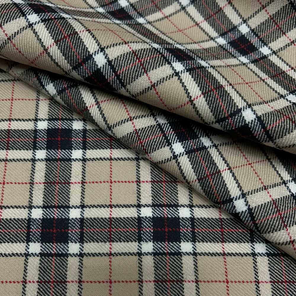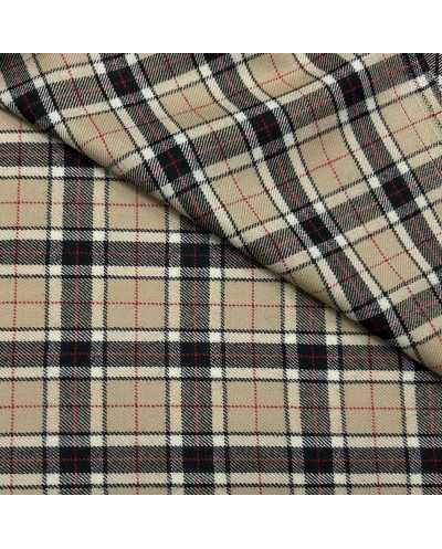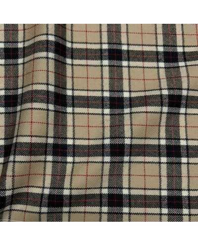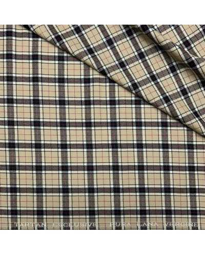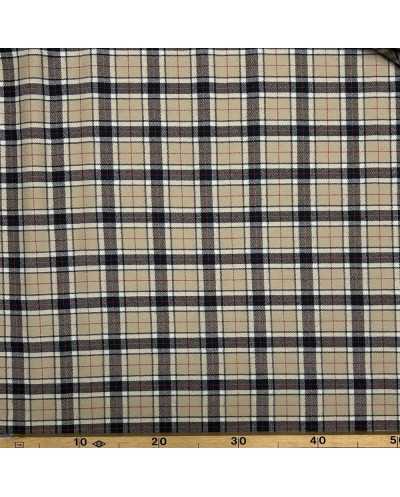 Tessuto pettinato lana cammello disegno scozzese qudretto nero