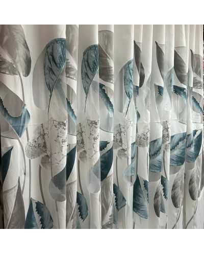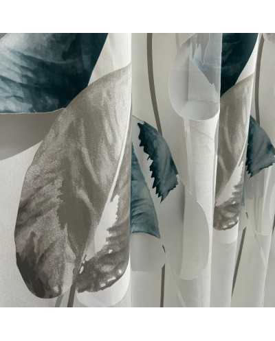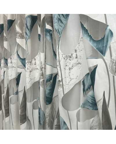 Tessuto tenda in viscosa devorè disegno foglie grigio e ottanio