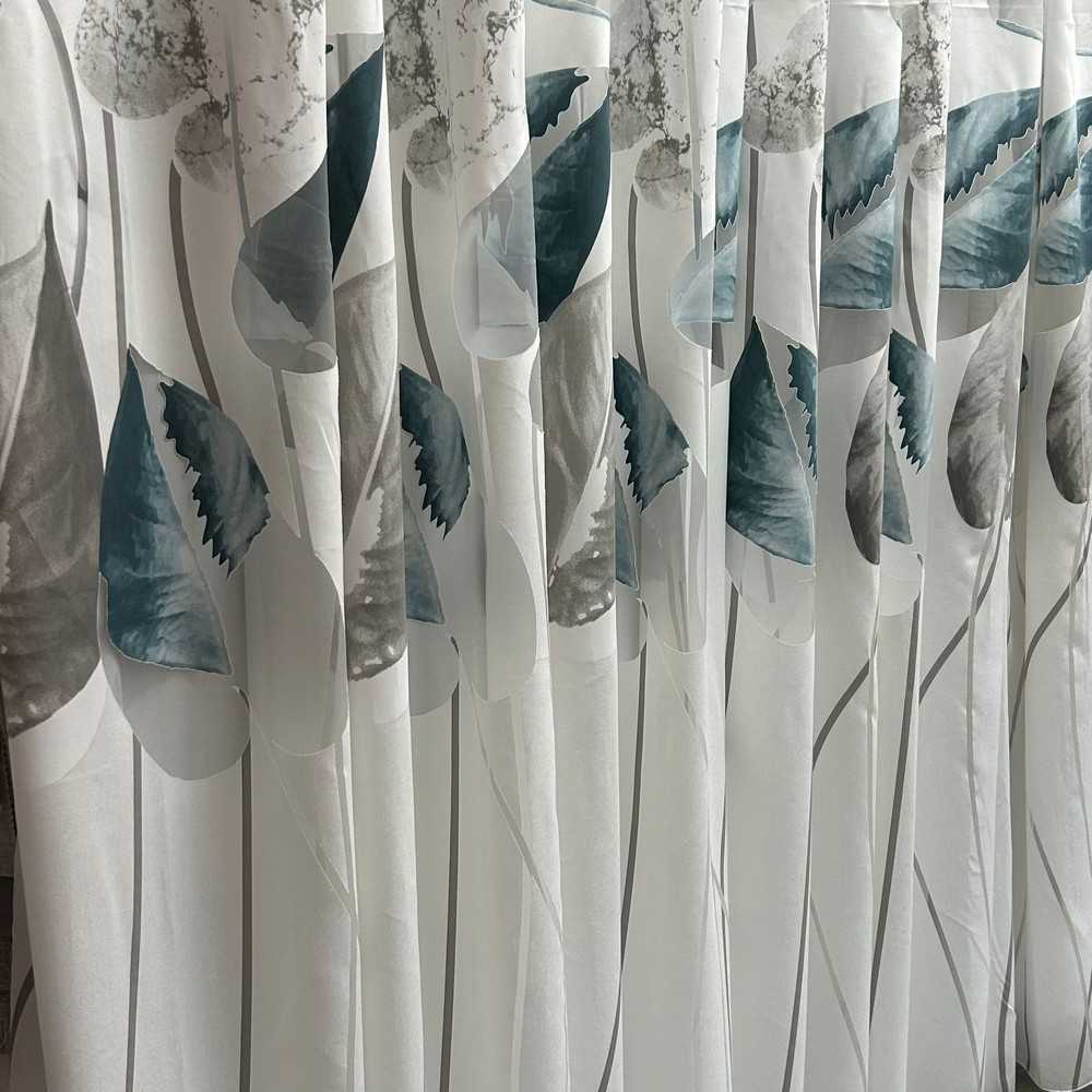 Tessuto Tenda Devorè Foglie Ottanio 400x315 Cm