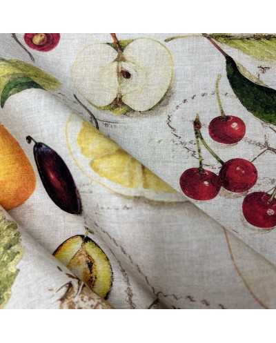 Tessuto tela di cotone stampa digitale disegno frutta botanica