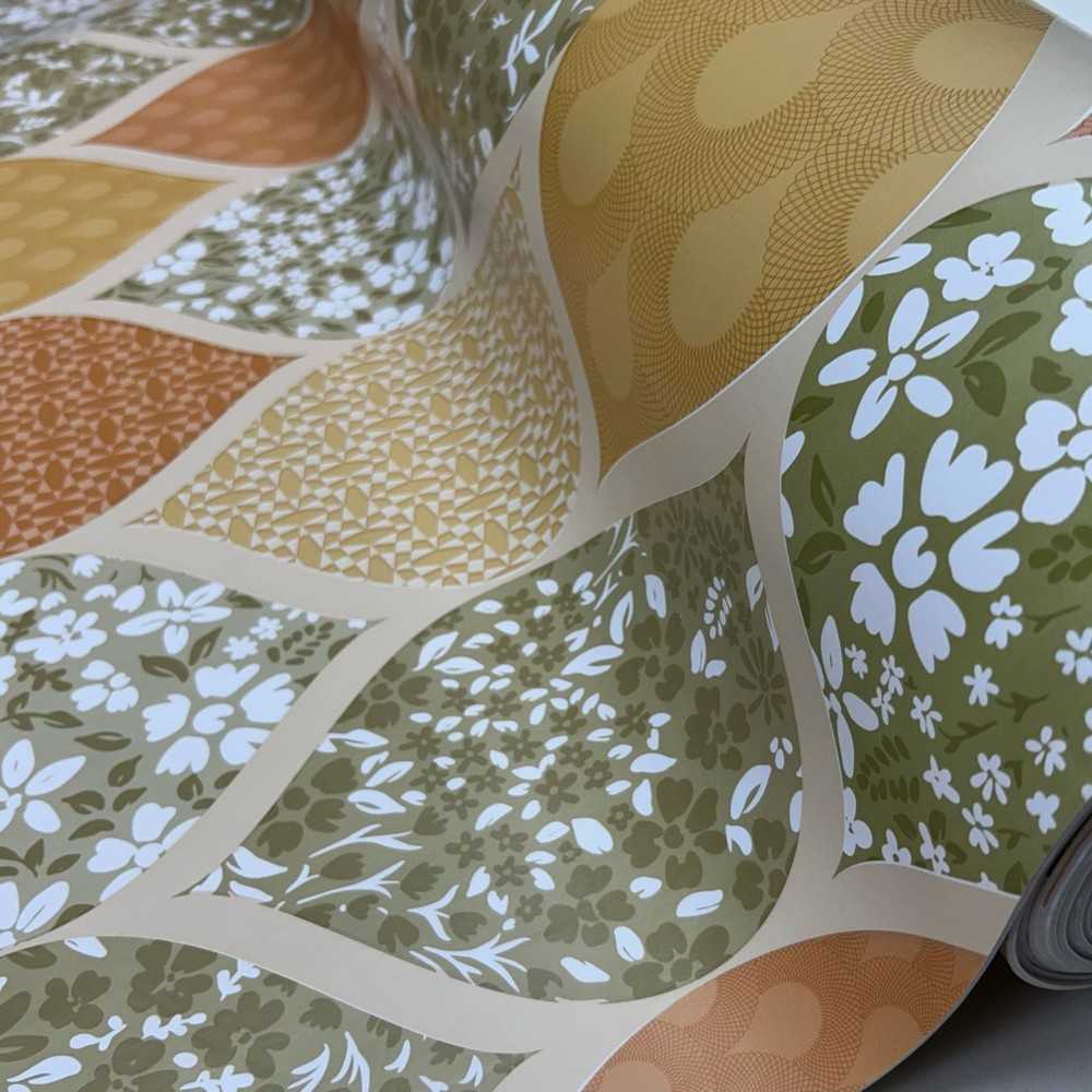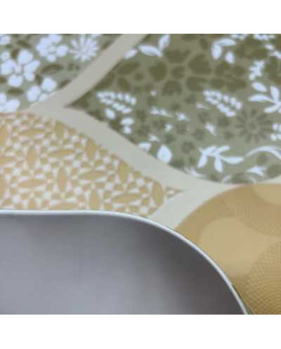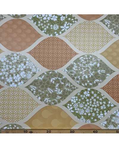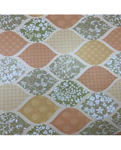 Tessuto plasticone fantasia fior d'ulivo verde, arancio e giallo