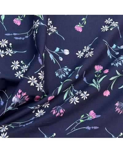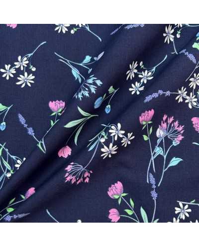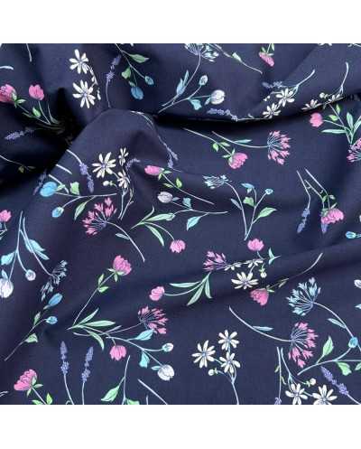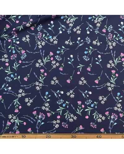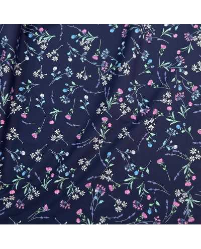 Tessuto Popeline Elastico Fiorellini Blu 50 Cm